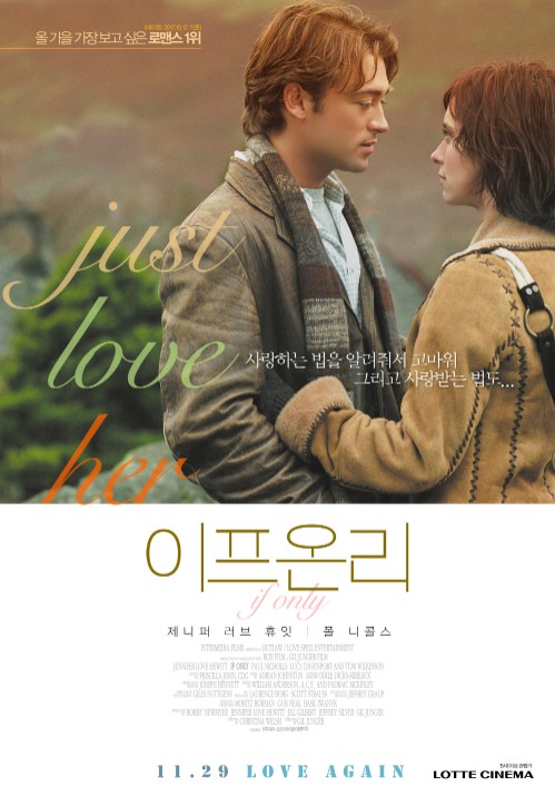 이프 온리는 2004년 개봉한 영화다. 개봉 당시 극장 비수기로 82개 관으로 시작해 입소문을 타 6주 이상 장기 상영하며 100만 관객을 동원해 흥행에 성공하게 된다. 이프 온리는 2017년 재개봉되었고 날씨가 추워지면 생각나는 영화하면 순위 안에 꼭 드는 영화가 아닐까 싶다. 타임리프를 소재로 한 영화로 가슴 절절한 로맨스에 자칫 방해될 수 있는 판타지 요소가 적절하게 가미돼 있어서 극의 절정을 더 효과적으로 보여주는 것 같고 영화의 중반부터는 눈물이 수도꼭지를 튼 것처럼 멈추지 않고 흐른다. 스토리뿐만 아니라 영화에 삽입된 사운드트랙도 한몫하는데 가수이자 배우인 제니퍼 러브 휴잇이 노래를 부르는 장면은 영화가 끝나고 나서도 여운이 깊게 남는다. 쌀쌀한 날씨에 마음까지 추워지는 요즘 이 영화를 통해 자신의 옆에 있는 사람에 대한 소중함을 다시 한번 느껴보면 어떨까 싶다.